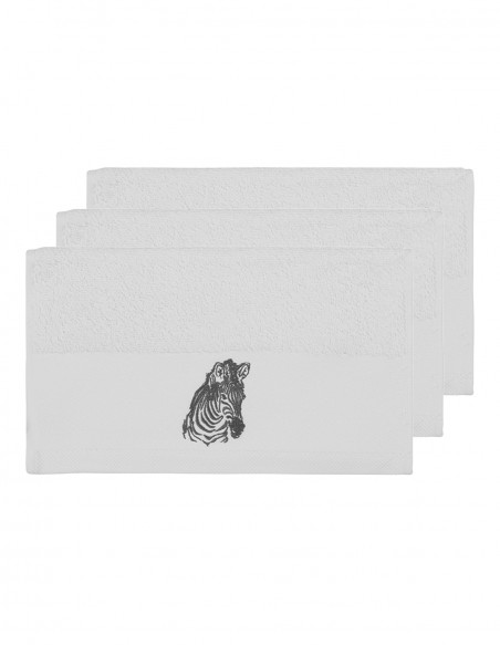 Lot de 3 Serviettes invité 30x50cm Brodées ZEBRA