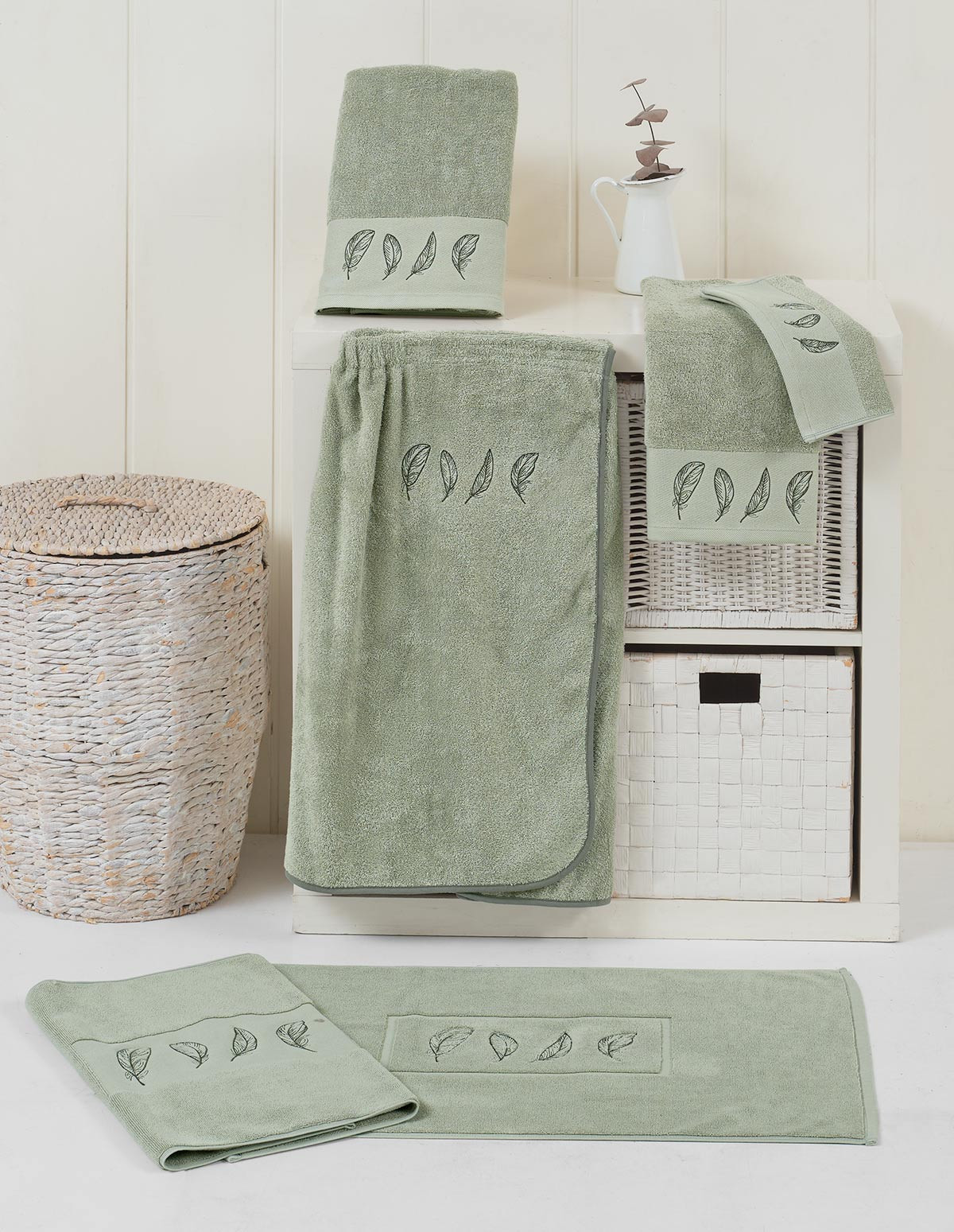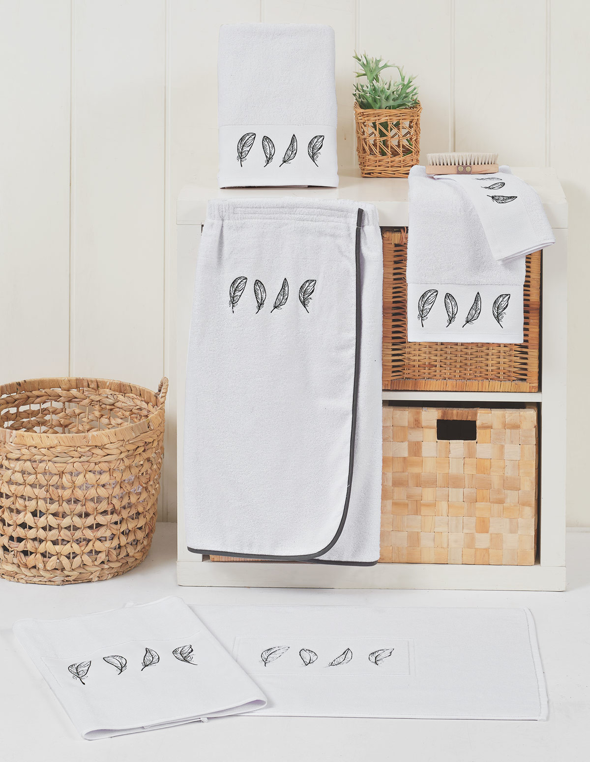 Drap de douche 70x140cm brodé PLUMES