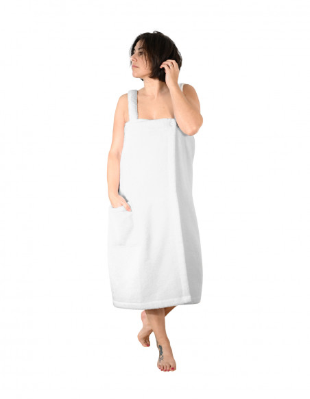 Doté de brettelles, d'un système de bouton à pression et d'une grande poche, le robe de bain unie vous assurera une protection plus qu'optimale.