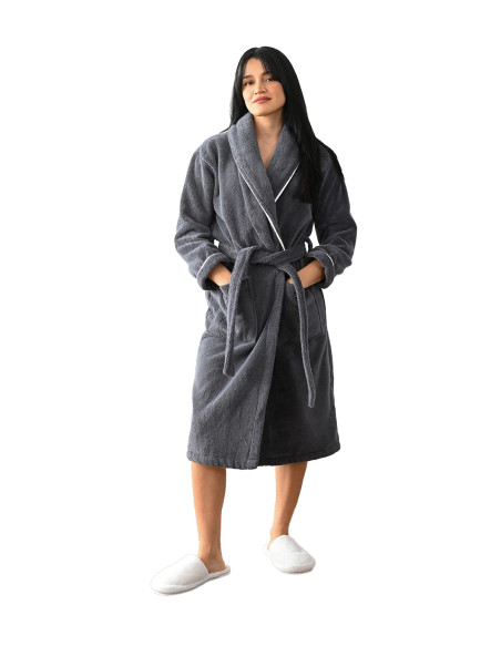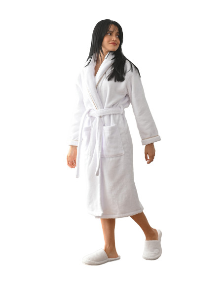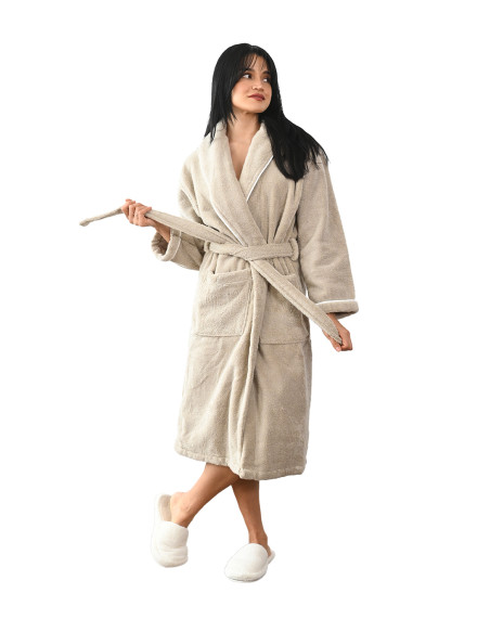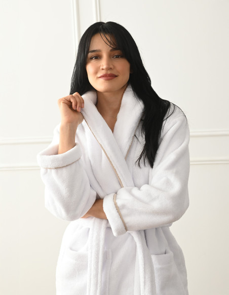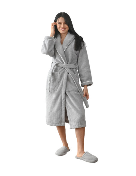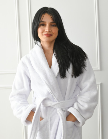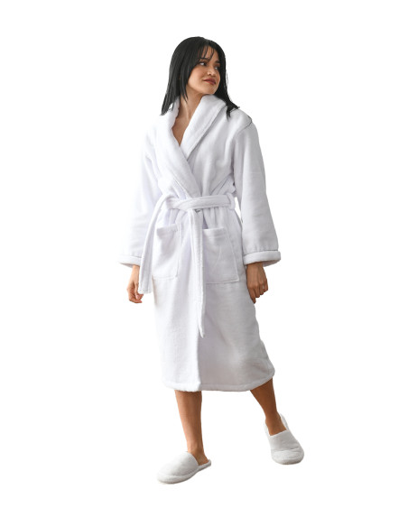 Peignoir de bain Peignoir de bain moelleux mixte col châle 450gr/m² SENSOFT Sensei Maison 0470 Notre peignoir de bain mixte de la collection SENSOFT dispose de plusieurs atouts : très confortable grâce à son col châle, ses 2 grandes poches et sa ceinture il vous garde aussi bien au chaud et au sec (450gr/m²). Sans parler de son design sobre et élégant au coloris épuré. Son secret ? 100% coton naturel, ce qui confère à ce peignoir de bain tout le... Voir