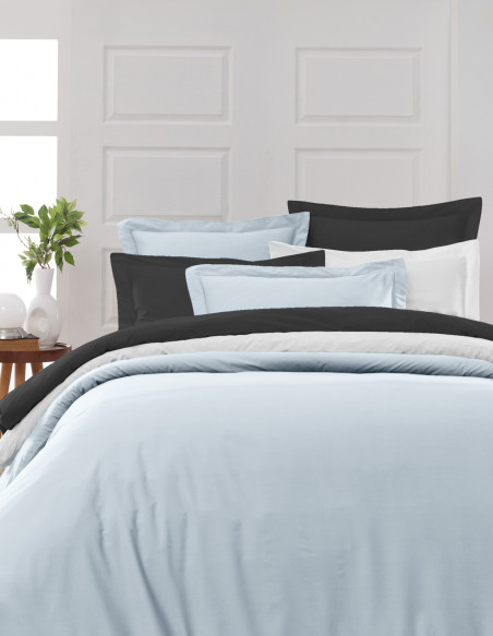 La housse de couette unie SOFT PERCALE est en forme bouteille et disponible en 140x200cm, 200x200cm, 240x220cm et 260x240cm pour un panel de superbes couleurs.