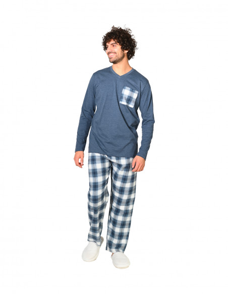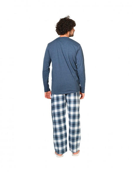 Pyjama pantalon 100% coton bas carreaux haut jersey uni ROBIN