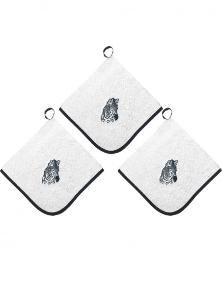 Les dimensions des torchons éponge carré sont de 50x50cm et les torchons sont munis d’une lanière, afin de bien les accrocher un peu partout, sans être oubliés !